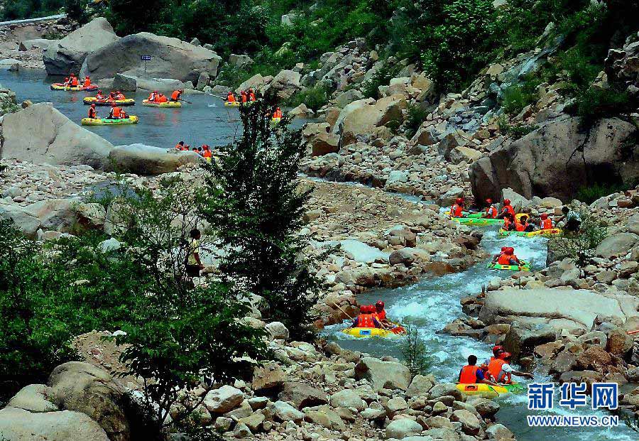 Tourists drift down a valley in Ruyang county, central China's Henan province, July 7, 2013. (Xinhua/Wang Song)