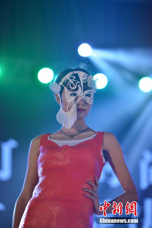 A model presents a 3D printed creation at the undergoing 2015 World 3D Printing Technology Industry Conference & Expo in Chengdu, June 3. (CNS Photo)