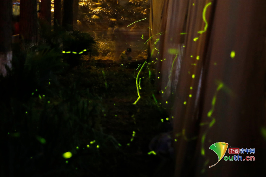 | A firefly-themed park is opened in Wuhan, central China’s Hubei province on June 4, 2015. Thousands of fireflies created a mysterious atmosphere at night, which attracted many tourists. (Photo source: youth.cn) |