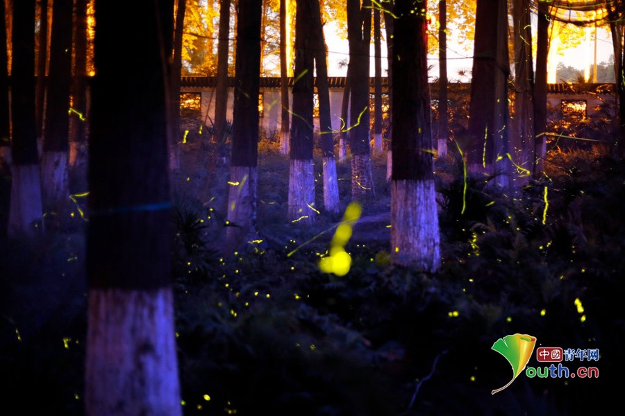 A firefly-themed park is opened in Wuhan, central China’s Hubei province on June 4, 2015. Thousands of fireflies created a mysterious atmosphere at night, which attracted many tourists. (Photo source: youth.cn)