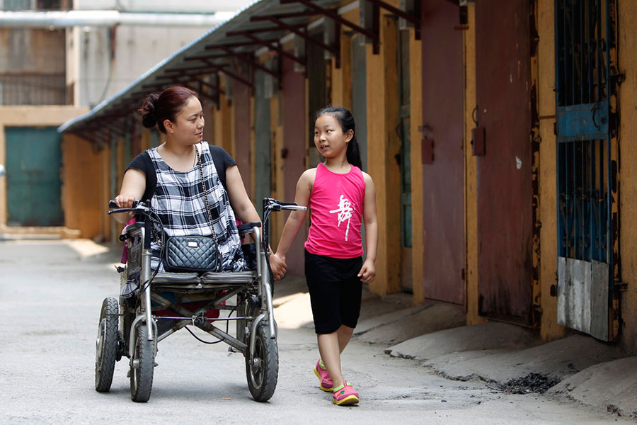 Zhao Xiaoxi, 7, stays together with her mother. (Photo/Youth.cn)