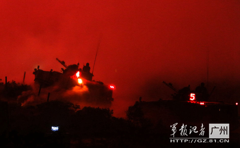 In order to cater to the needs of future battlefield, one division in Guangzhou Military Region has stepped up night training. On the night of May 25, 2015, experts and leaders from Guangzhou Military Region gave approval to the standards for the last few night training programs.(Photo/81.cn)