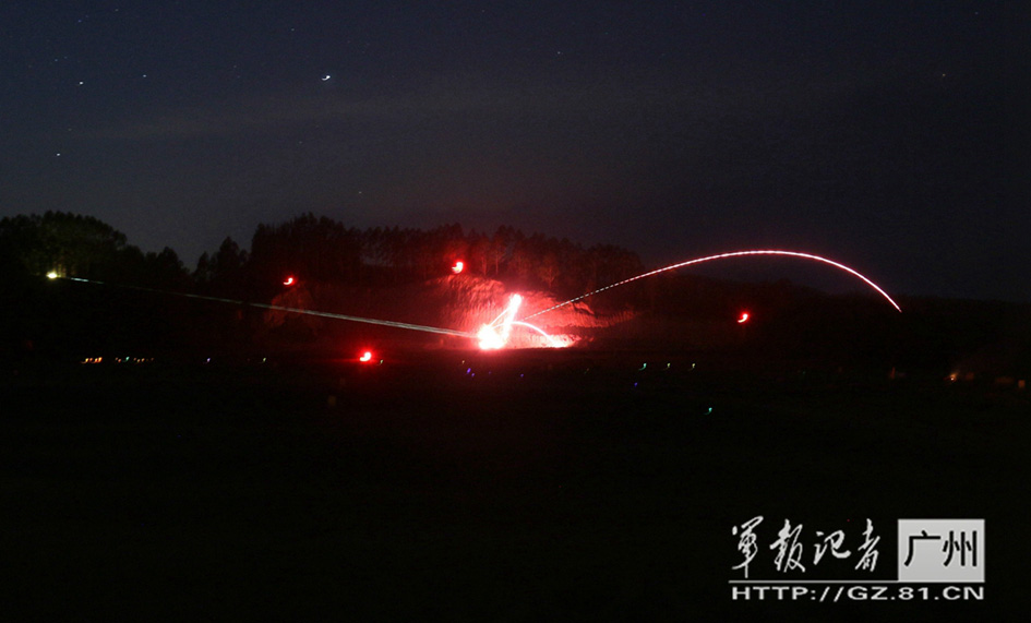 In order to cater to the needs of future battlefield, one division in Guangzhou Military Region has stepped up night training. On the night of May 25, 2015, experts and leaders from Guangzhou Military Region gave approval to the standards for the last few night training programs.(Photo/81.cn)