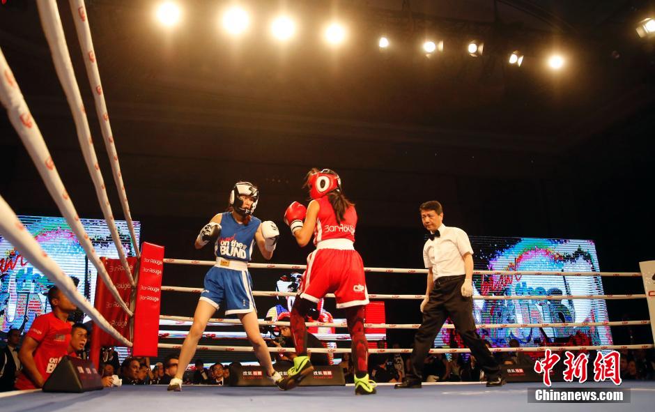 The 10th Waitan white-collar charity boxing game opens in Shanghai, June 6, 2015. (Chinanews/Tang Yanjun)