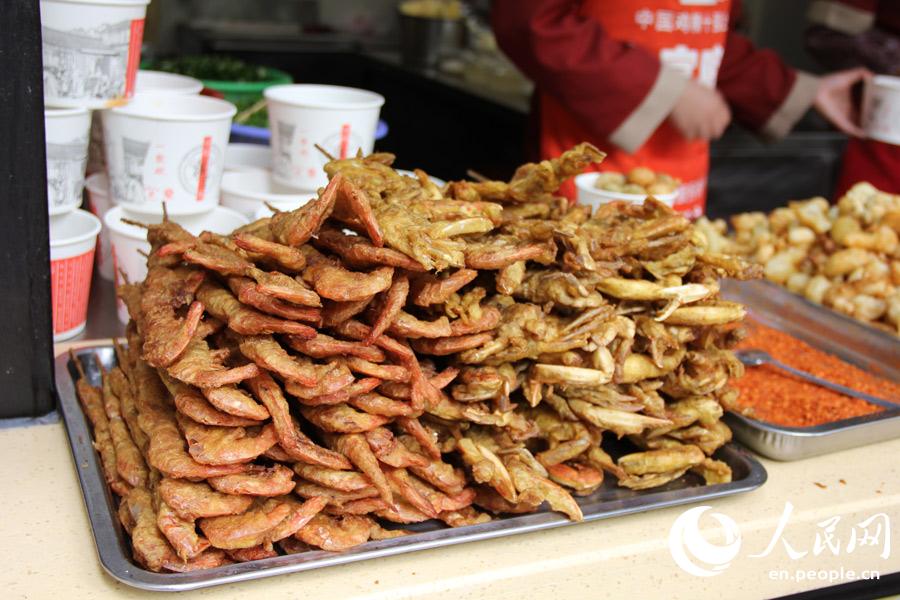 Photo shows a variety of local snacks sold in Jinli Pedestrian Street. Jinli Pedestrian Street is one of the oldest and busiest streets in Chengdu, southwest China’s Sichuan province. You can get a taste of authentic Chengdu flavor by trying local snacks and specialties.(People's Daily Online/Huang Jin)