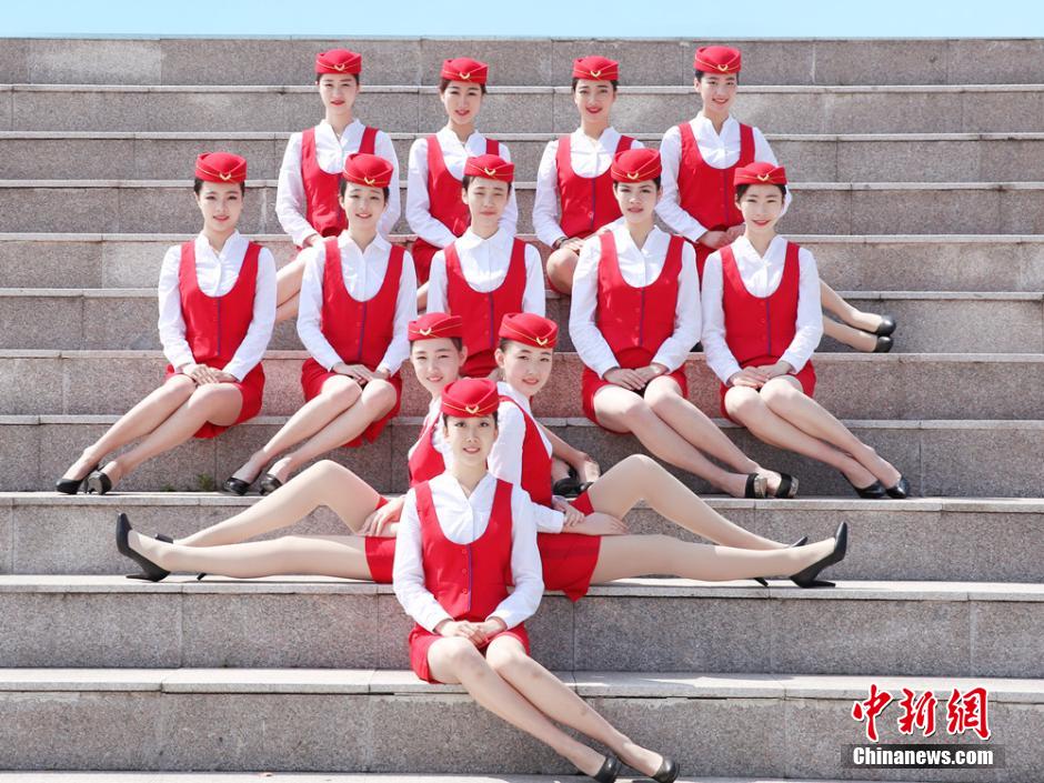 Dressing up in different costumes, the students majoring in in-flight service in Jiangnan Film and Television Art College pose for graduation photos in east China’s Jiangsu province on June 8, 2015. (Chinanews/Sun Quan)