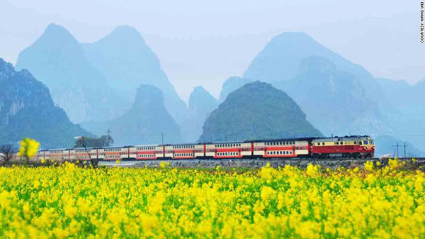 | A moving train across the Aer mountain, Inner Mongolia in the mist of July.(Photo/Wang Wei) |