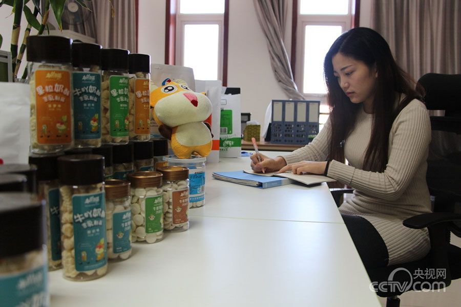 A girl collects information of sales volume and customers every day. (CNTV/Du Xiaojing)