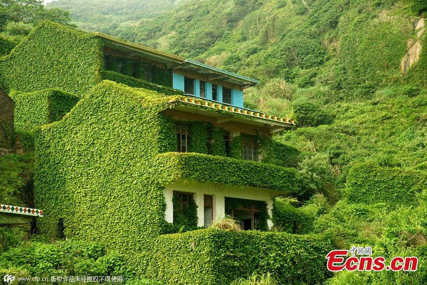 Houses covered with tendril climbing plants are seen on a deserted village in Zhoushan, East China’s Zhejiang province on May 31, 2015. The former fishing village has been reclaimed by nature after its villagers move out.
