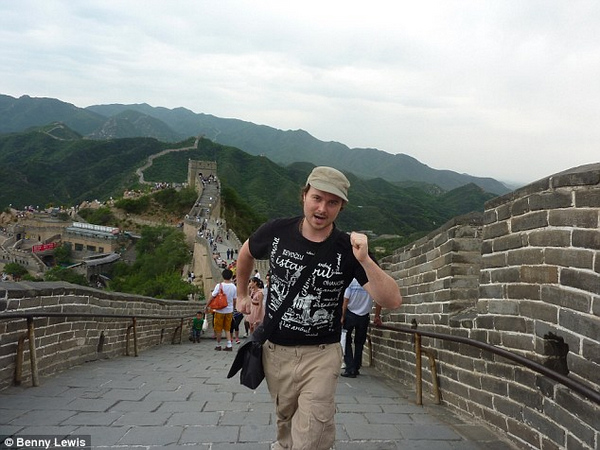 Benny at the Great Wall Of China - the 32-year-old travels the world learning languages