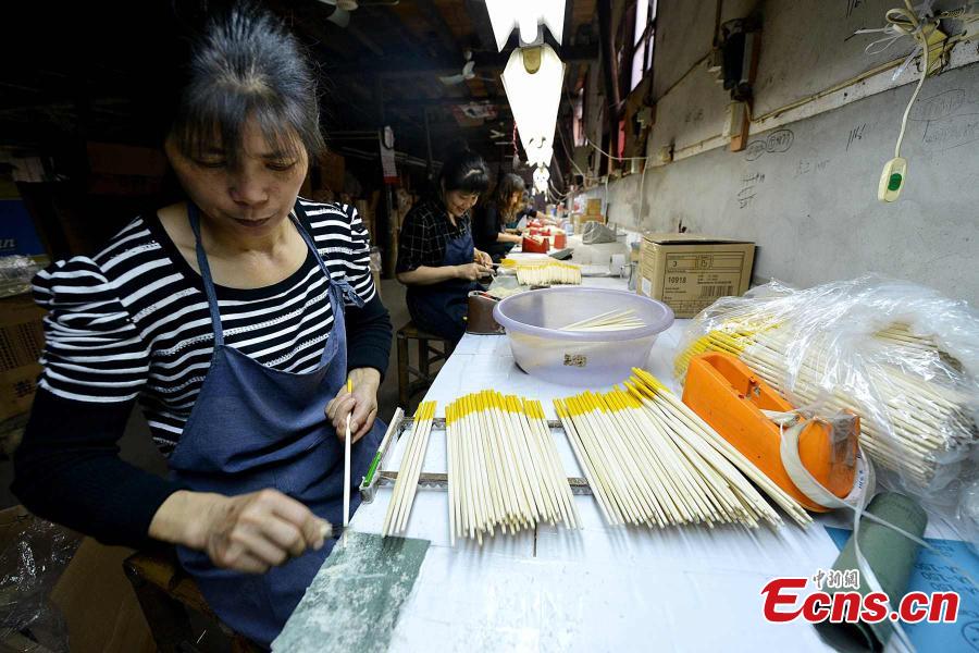 A worker makes chopsticks at the Tiantian company in the Cangshan district of Fuzhou, East China’s Fujian province. The district has a long history of producing diverse styles of chopsticks, and its craftsmanship is part of the province’s intangible cultural heritage list. However, the sector has been gradually declining, with few companies left in the district. Tiantian has been producing and selling chopsticks for more than 30 years, with most of its exquisite chopsticks sold in Japan, Southeast Asia, Europe and the United States. The production of quality chopsticks involves about twenty steps, such as selecting and polishing the materials, and takes between 15 days and a month.