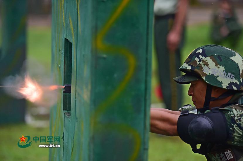 174 armed police soldiers from Guangdong border defense force conduct a shooting competition on May 23, 2015. The three-day competition aimed to build up their fighting capability and shooting skill in harsh environment. (Photo/81.CN)