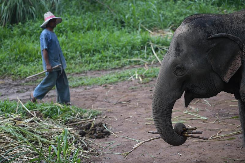 A mahout walks towards an elephant in Chiang Saen, northern Thailand.(Photo/Xinhua)