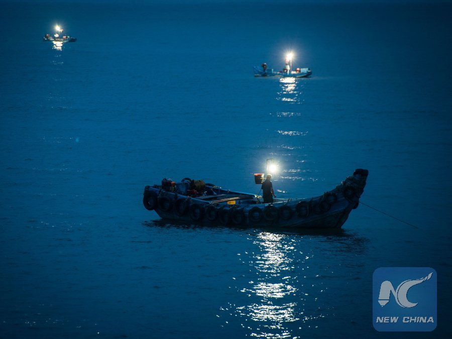 | Photo taken on June 20, 2014 shows local fishing boats on the Nanmenwan sea area of Dongshan Island, southeast China's Fujian Province. (Xinhua/Shen Hong) |