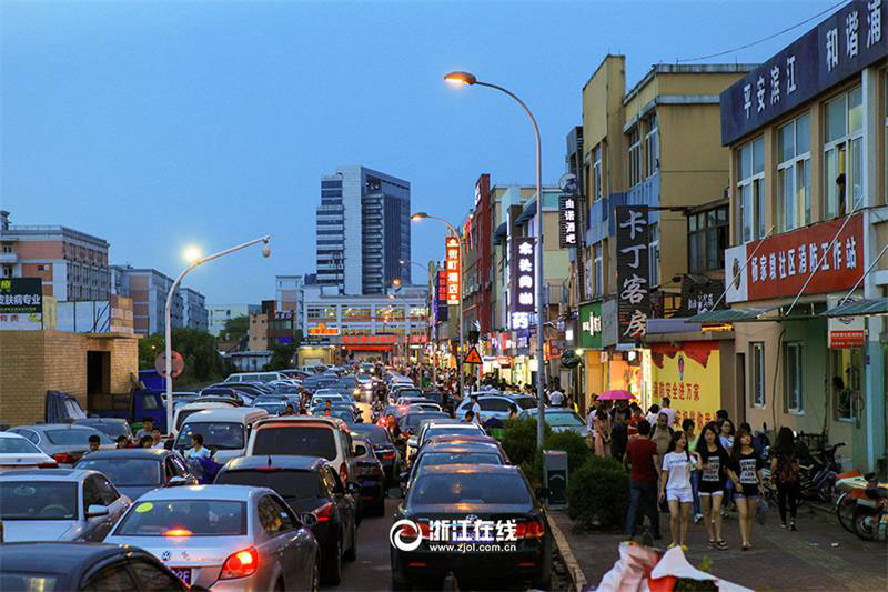 An area dubbed "Bargain Street" sees floods of people frequenting food stands, fast-food chains, Chinese restaurants, western restaurants and clothing stores in Hangzhou, east China's Zhejiang province.(Photo/zjol.com.cn)