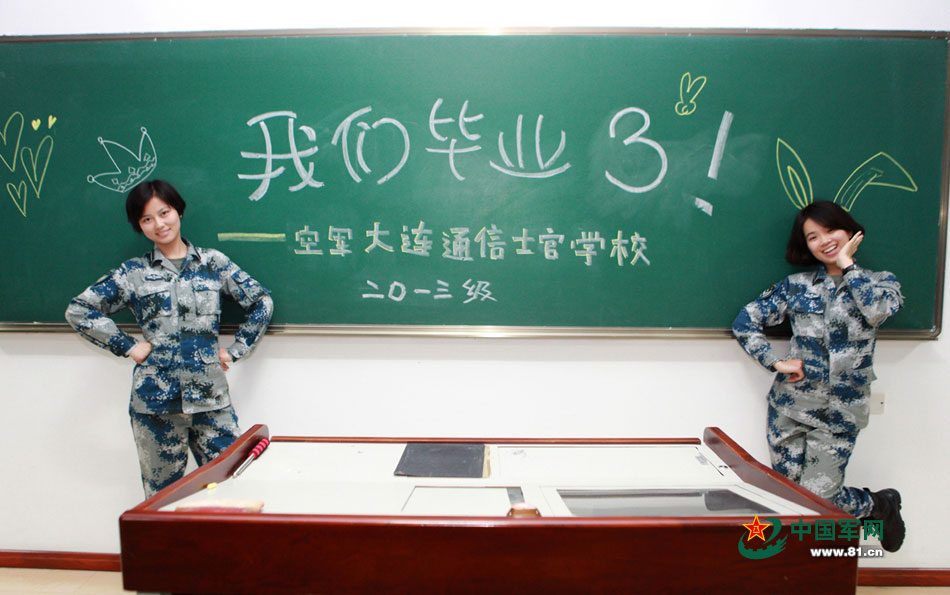 Students take graduation photos celebrating their beautiful university life in Dalian Communication Sergeant School of Air Force in Dalian, northeast China's Liaoning province.(Photo/81.cn)