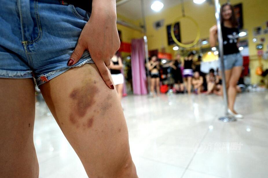 A dance workshop sees a group of young Chinese females learning pole dance in Jinan, east China's Shandong province. These women are expected to be qualified pole dancers after three months of slaving away at it. At last, they are likely to go back to their hometowns or other third-tier cities and earn nearly 10,000 yuan a month by performing pole dance.(Photo/iqilu.com)