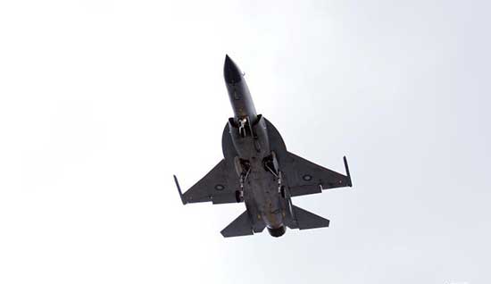 The JF-17 Thunder or FC-1 Xiaolong (Fierce Dragon) is a lightweight, single-engine, multi-role combat aircraft developed jointly by the PAC and AVIC. Three of them are being displayed at the show and will perform aerobatic displays.