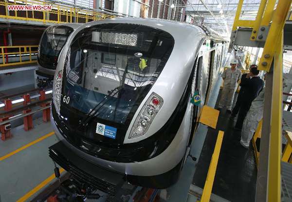 | Photo taken on May 20, 2015 shows a Chinese-made subway train for the Olympic special line in Rio De Janeiro, Brazil. (Xinhua/Pang Xinglei) |