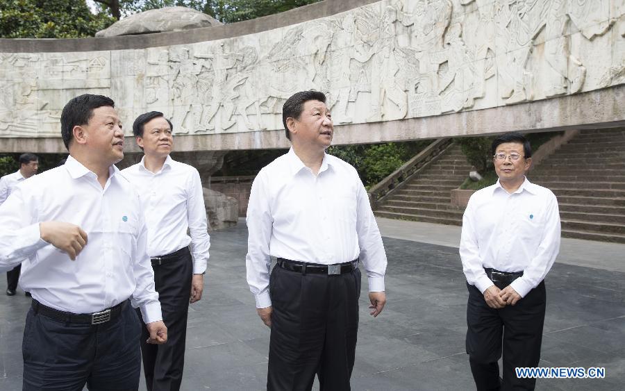 Chinese President Xi Jinping (2nd R) visits a martyrs' cemetery in Zunyi, southwest China's Guizhou Province, June 16, 2015. Xi had an inspection tour in Guizhou Province from June 16 to 18. (Xinhua/Huang Jingwen)