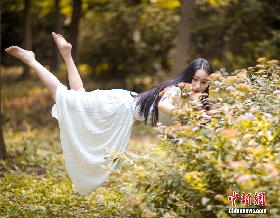 Xiao Ge takes amazing shots of herself floating in the air. Xiao Ge is a dancer from POLE 11, China's first pole dance girl group.(Photo/Chinanews.com)