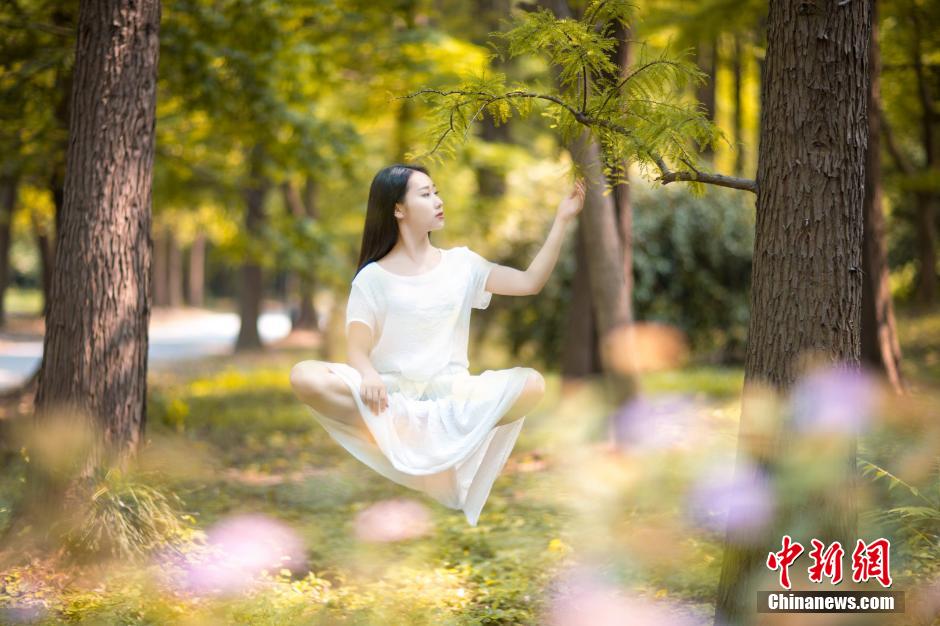 Xiao Ge takes amazing shots of herself floating in the air. Xiao Ge is a dancer from POLE 11, China's first pole dance girl group.(Photo/Chinanews.com)