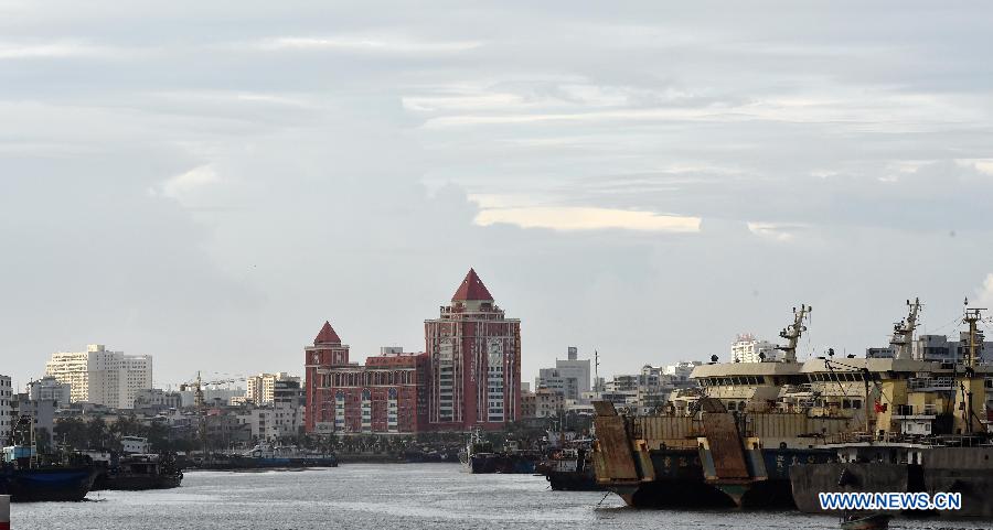Ships berth at Xingang Harbor in Haikou, capital of south China's Hainan Province, June 21, 2015. Tropical storm Kujira strengthened into a typhoon in the South China Sea on Sunday, which is moving northward and likely to become the first typhoon to hit China this year. (Xinhua/Zhao Yingquan)