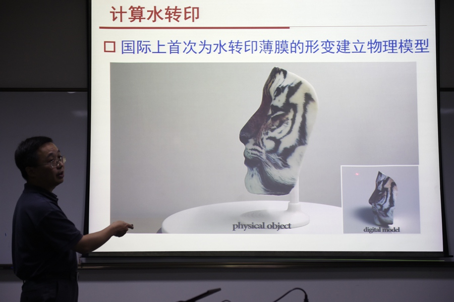 A three-dimensional coloring technology is invented by a research team of Zhejiang University. This technology can solve the problem of coloring three-dimensional objects. (Photo/ Xinhua)
