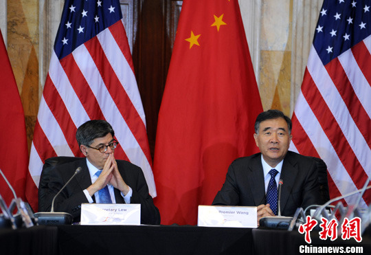 Chinese Vice Premier Wang Yang and US Secretary of Treasury Jack Lew. (Photo/Chinanews)