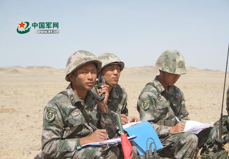 | PLA soldiers of an artillery regiment from Lanzhou Military Region recently conduct a live shell drill in Gobi desert. The drill helps to build up the courage and fighting capability of the soldiers in harsh environment. (Photo/81.cn) |