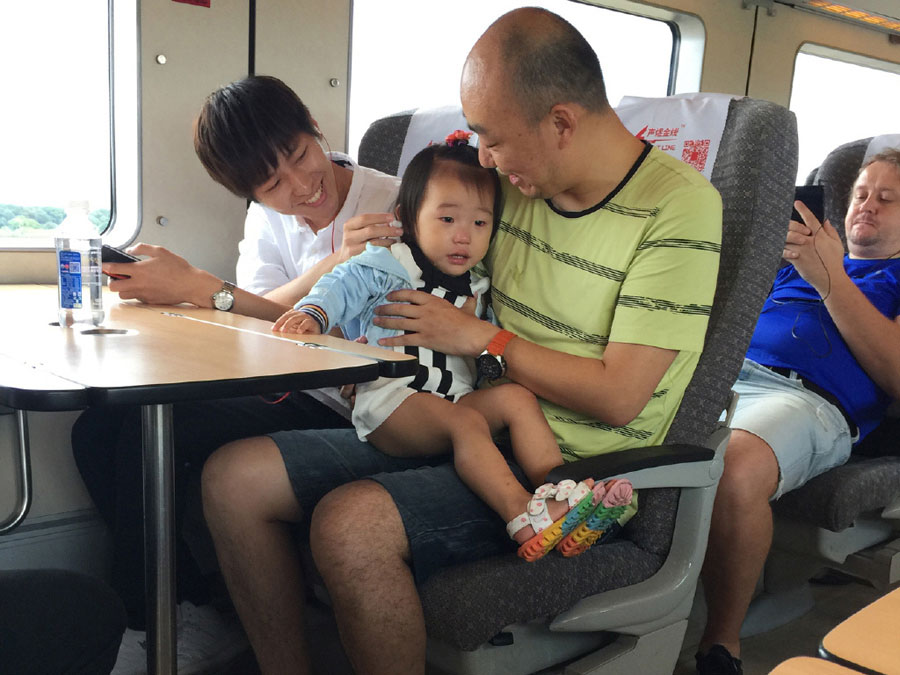 A young man wearing earphones has gone viral online for taking care of a little girl recently. The photos show this man successfully stopped the little girl from crying by sharing one of his earphones with her. It is said that they were on a train from Guangzhou to Shenzhen on June 22. The young man's kindness and handsome looking won high praise from netizens. Many fans said they hope to see more selfies on his Weibo. (Yangtze evening news/Xu Jing)