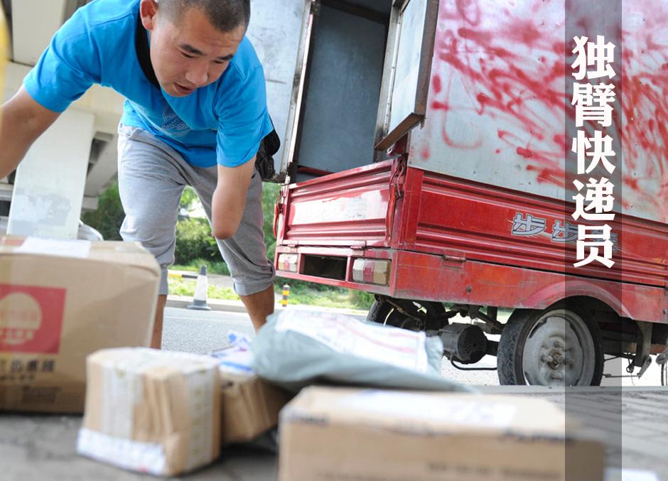 Xing Liang, 33, is a courier living in Changchun, northeast China’s Jilin province. Born with a deformity in his left arm, he has to rely on his right arm to work. Optimistic and hard-working, Xing Liang shows no difference with other couriers, with a record of delivering 315 packages a day. He has become a star courier of the community. (CNS/Zhang Yao)