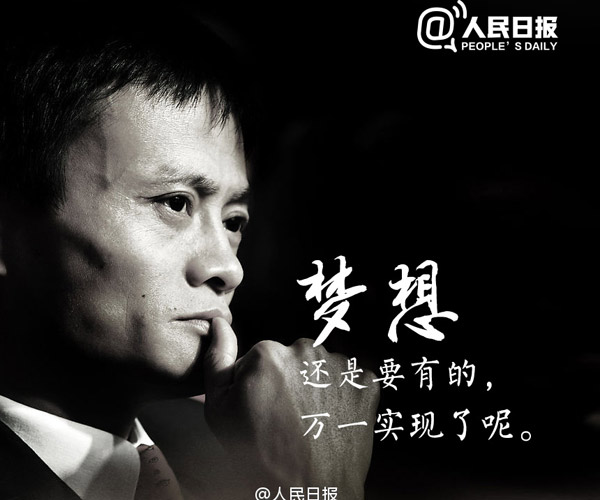 | Jack Ma once said, "We'd better have a dream,in case it comes true someday." .(Photo/ official weibo of People’s Daily) |