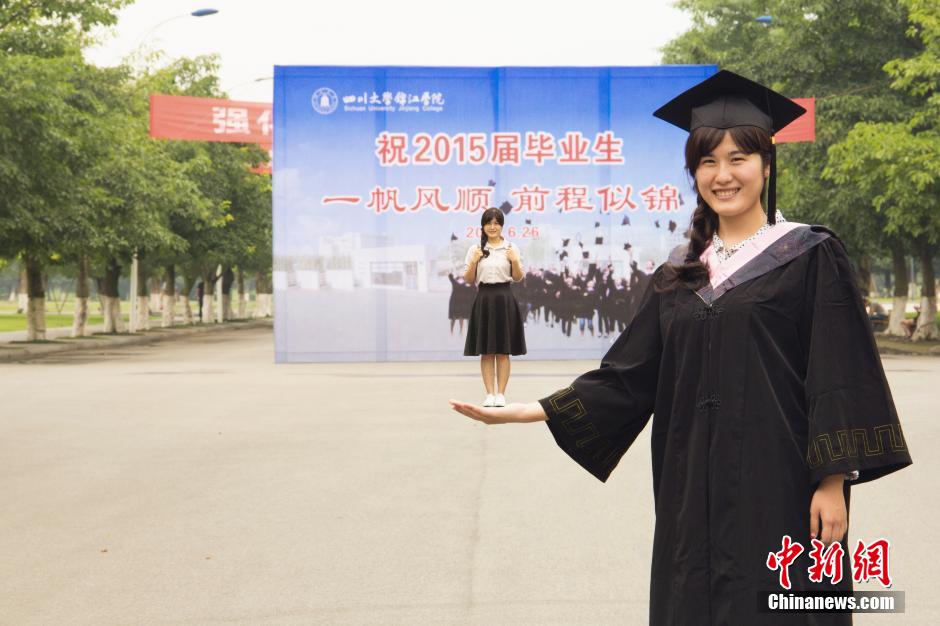 A group of creative graduation photos released by college students in Jinjiang College of Sichuan University has drawn much attention from the public. The students photoshopped themselves into the photos, showing their youth stories in fresh and romantic style. (Photo/Yang Xueping)