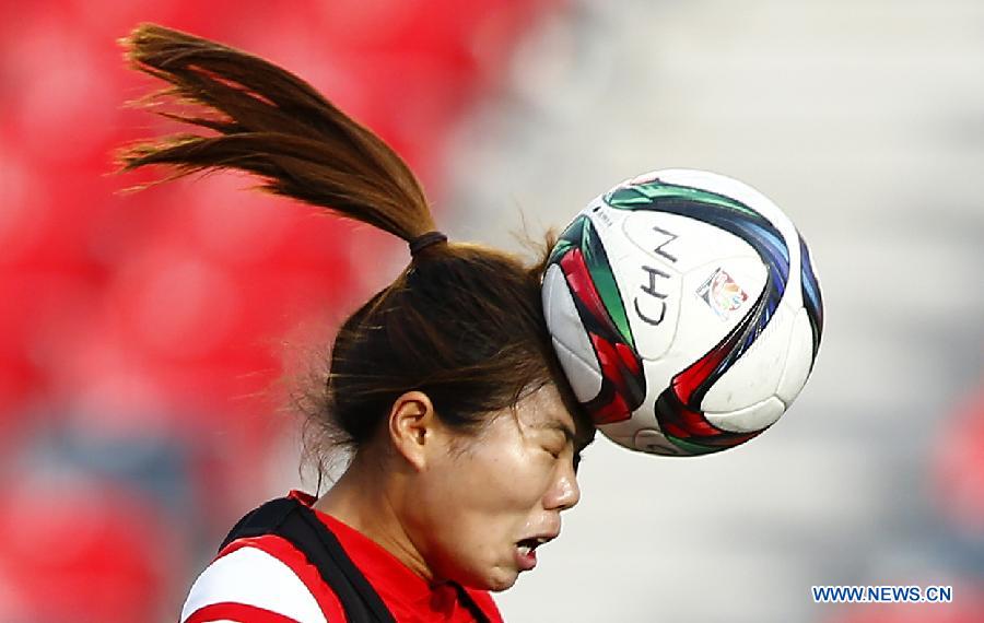 Wang Lisi of China attends the training session of 2015 FIFA Women's world cup in Ottawa, Canada, June 25, 2015. (Xinhua/Ding Xu)