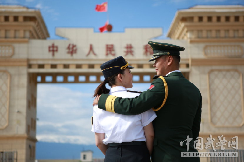 At the border between China and Kazakhstan, Mulati, an ethnic Kazakh police officer at the Dulata border inspection station, has a romantic wedding with his bride Senbati, who is also ethnic Kazakh, on May 28, 2015. (Photo/wj.81.cn)