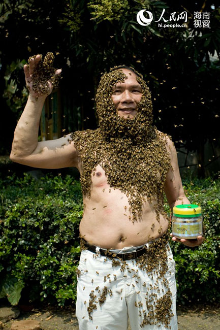 Chen Changzhuo, nearly 70, has been a bee keeper for 51 years. He was called the bee-keeping master in Hainan.(Photo/People's Daily Online)