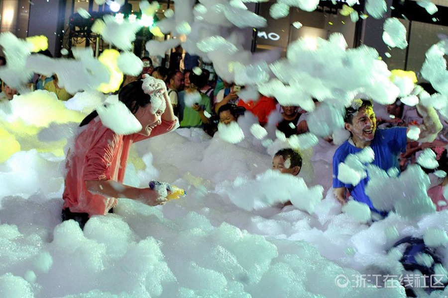 Foam party lands in walking street in Jinhua (9)