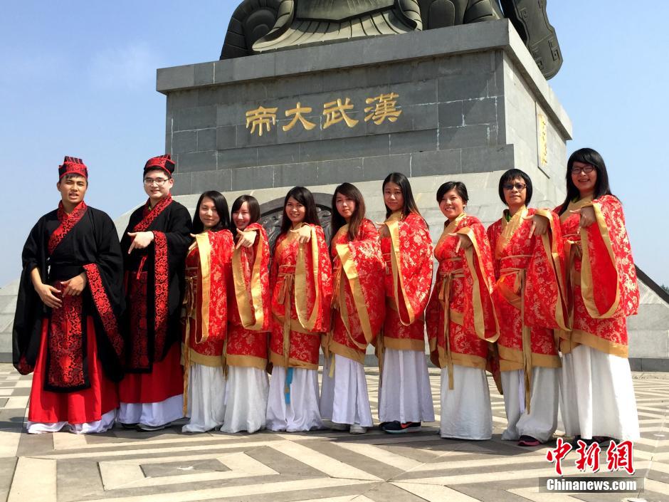 | Hundreds of Hong Kong students from the Hong Kong University of Science and Technology, the Hong Kong Polytechnic University, the Chinese University of Hong Kong and other universities experience the charm of Chinese traditional culture in Hanfu Clothing in Xi’an, July 1, 2015. (Chinanews.com/Zhangyuan) |