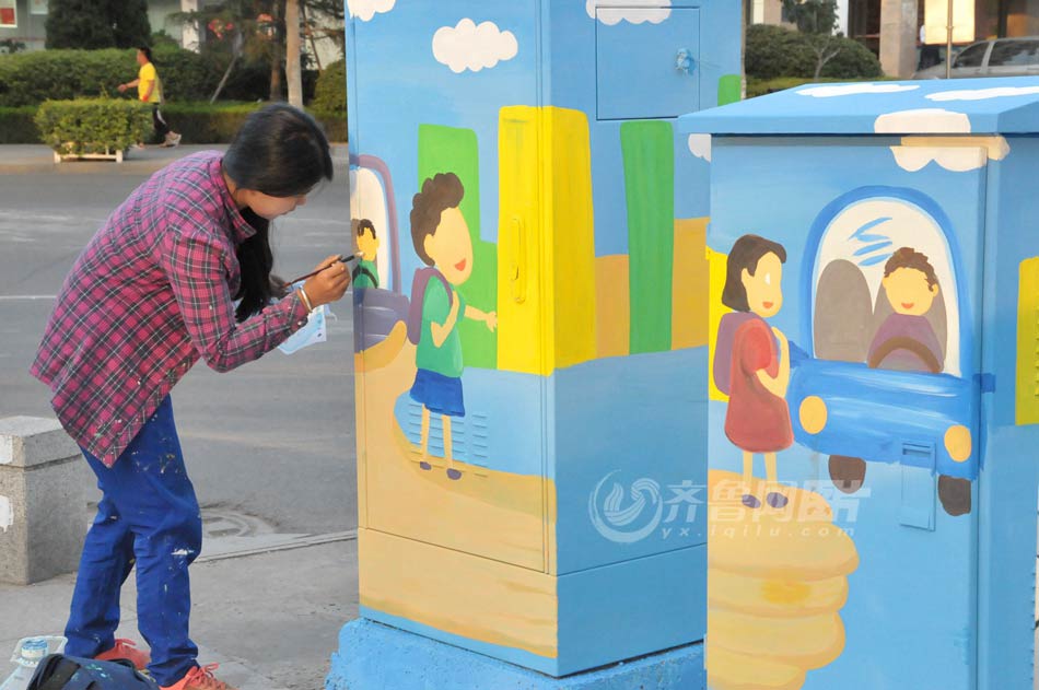 Post-90s girl paints colorful 'coats' for municipal facilities in Qingdao (3)