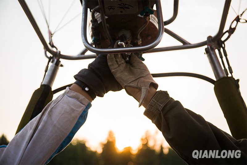 Li Yongjun’s balloon was pumped up by hot air from the flaming burner on June 21, 2015. The direction of flight depends on the wind, but the altitude of the balloon can be controlled by changing the temperature of the air inside the envelope. (Photo/Yu Ying)