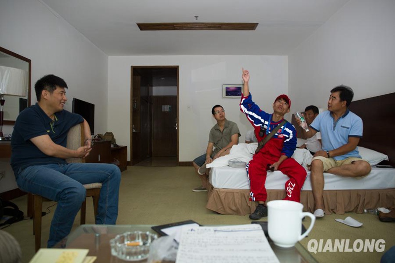 Li Yongjun discussed the piloting skills with his teammates in a hotel room on June 13, 2015. In competition, the pilots need to be able to read different wind directions at different altitudes.(Photo/Yu Ying)
