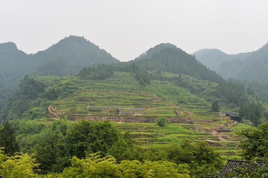Photo taken on July 3, 2015 shows Laosicheng site in Yongshun, central China's Hunan Province. Tusi sites -- the remains of an ancient political system adopted by Chinese emperors to govern ethnic minority regions in south-central and southwest China -- were inscribed in the World Heritage List on Saturday. The inscribed sites, located in mountainous areas, are Laosicheng in Hunan Province, Tangya in Hubei Province and Hailongtun Fortress in Guizhou Province. Tusi literally means hereditary tribal headmen appointed by Chinese emperors to govern the often unruly ethnic minority regions in the central and western parts of south China, where the specific tribal governance system was adopted from the 13th to the early 20th century. (Xinhua/Bai Yu)