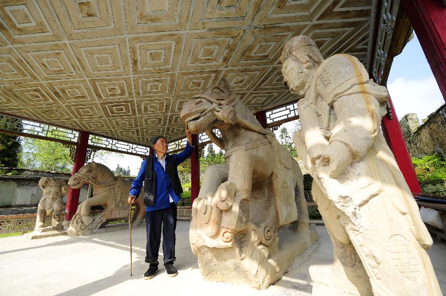| File photo taken on April 21, 2012 shows a scene of Tangya Tusi site in central China's Hubei Province. Tusi sites -- the remains of an ancient political system adopted by Chinese emperors to govern ethnic minority regions in south-central and southwest China -- were inscribed in the World Heritage List on Saturday. The inscribed sites, located in mountainous areas, are Laosicheng in Hunan Province, Tangya in Hubei Province and Hailongtun Fortress in Guizhou Province. Tusi literally means hereditary tribal headmen appointed by Chinese emperors to govern the often unruly ethnic minority regions in the central and western parts of south China, where the specific tribal governance system was adopted from the 13th to the early 20th century. (Xinhua/Hao Tongqian) |