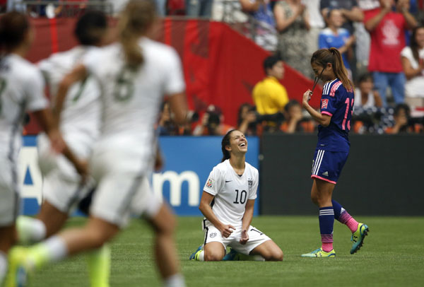 | The United States celebrates after defeating Japan in the final of the FIFA 2015 Women's World Cup at BC Place Stadium, Vancouver, British Columbia, CAN, July 5, 2015. [Photo/Agencies] |