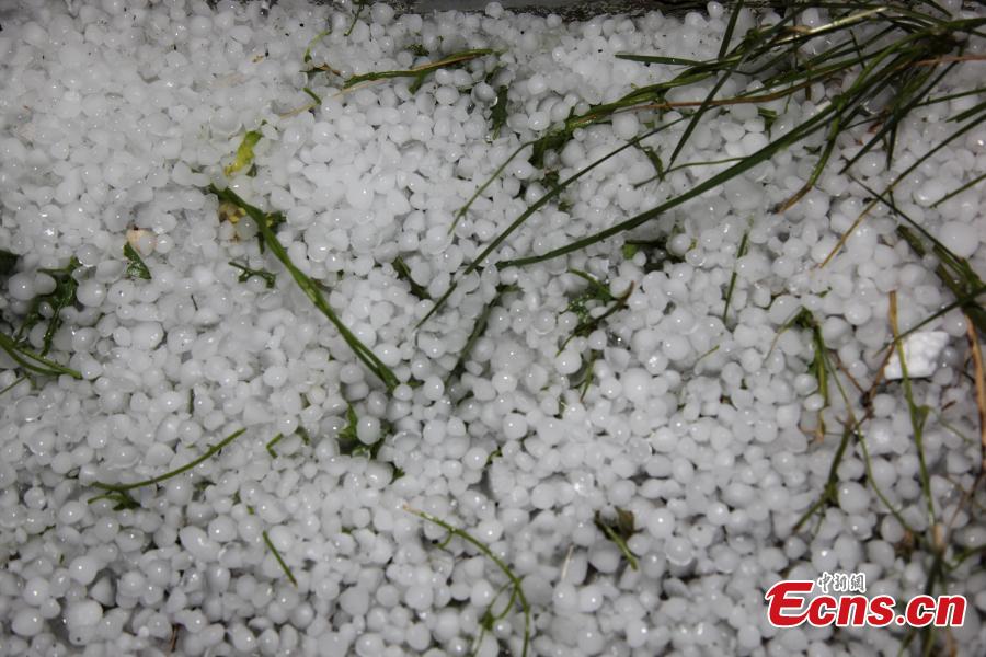 A region bordering Kazakhstan in Northwest China’s Xinjiang Uygur autonomous region was hit by rainstorms and hailstones from July 2 to July 4. The region is under the administration of the tenth division of the Xinjiang Production and Construction Corps (XPCC), which is a special social organization that handles its own administrative and judicial affairs within the reclamation areas. The XPCC assumes the responsibilities of cultivating and guarding the border areas. (Photo: China News Service/Liu Jin’an)