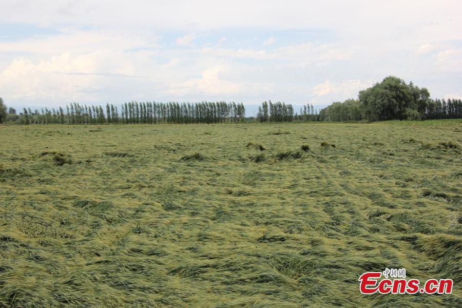 Crops are damaged by rainstorms and hailstones in a region bordering Kazakhstan in Northwest China’s Xinjiang Uygur autonomous region from July 2 to July 4. The region is under the administration of the tenth division of the Xinjiang Production and Construction Corps (XPCC), which is a special social organization that handles its own administrative and judicial affairs within the reclamation areas. The XPCC assumes the responsibilities of cultivating and guarding the border areas. (Photo: China News Service/Liu Jin’an)