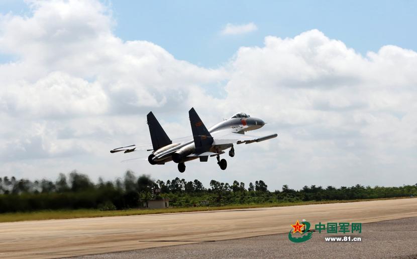 In this photo taken on June 25, J-11 fighters of the Air Force of Guangzhou Military Region under Chinese People's Liberation Army hold confrontation drill. (Photo source: 81.cn)