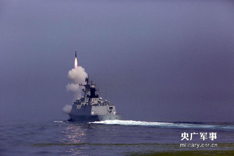 A tactical exercise is carried out by the Chinese Navy under simulated conditions of war in the Yellow Sea. Various types of missiles, torpedoes and artillery were fired during the drill. (Photo/ Wang Changsong)