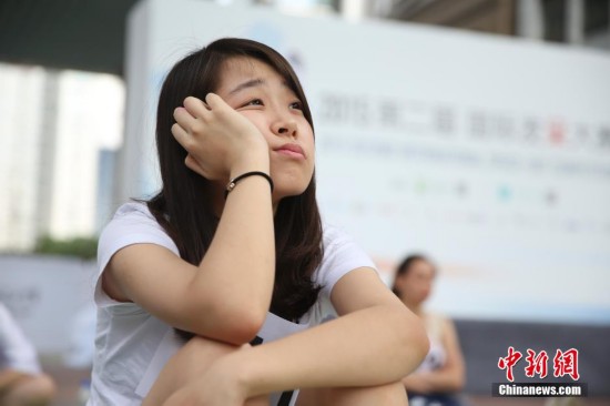 Eighty people of different age and with various jobs competed in Beijing to see who could space out the most on July 4, 2015. To win, contestants needed to look spaced out for two hours and refrain from making sudden or drastic movements. Using smart phones, chatting and listening to music are also prohibited during the contest. The first "Space-Out Competition" sponsored by a Korean artist Woops Yang in Seoul aims to show how important it is to take a break, clear one's mind, and space out. (CNS/Liu Guanguan)